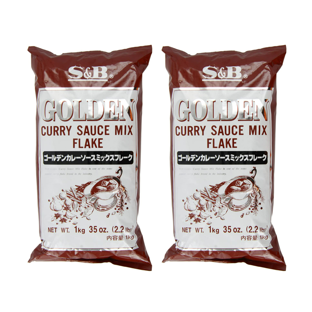 S & B Golden Curry Sauce Mix Flake with Curry Powder and Beef Bouillon - Home and Professional Cooking - Made in Japan - Set of 2 Packs - 2 x 1 KG.