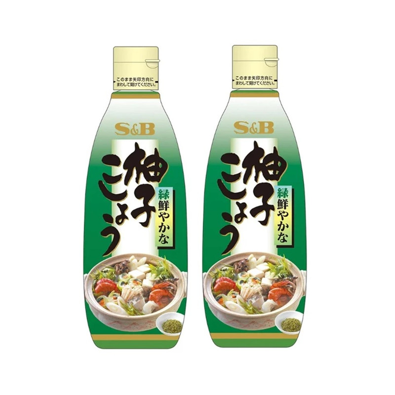 S & B Yuzu Kosho Sauce with Japanese Yuzu and Green Chili - For Yosenabe, Mizutaki, Dumpling, Sushi, Sashimi, Grilled Meat and Seafood - Home and Professional Cooking - Made in Japan - Set of 2 Pieces - 2 x 280 G.