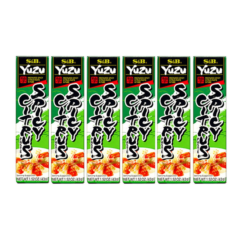 S & B Yuzu Kosho Spicy Citrus Paste - Japanese Yuzu Citrus Peel, Green Chili Pepper and Sake Rice Wine - Home and Professional Cooking - Made in Japan - Set of 6 pieces - 6 x 43 G.