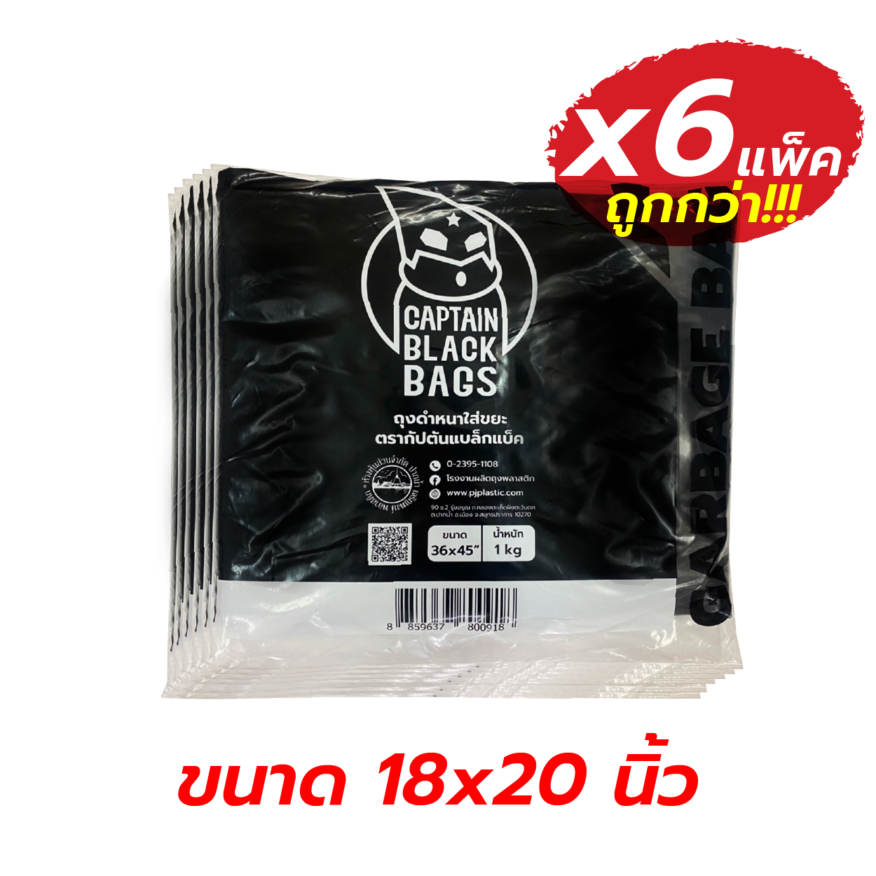 Captain Black Bags ถุงขยะดำหนา ถุงขยะรีไซเคิล (18 x 20 นิ้ว) แพ็ค 1 กิโลกรัม x 6 แพ็ค