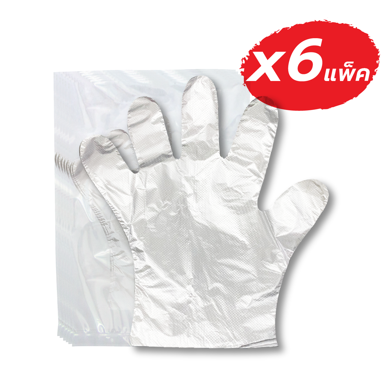 ถุงมือพลาสติก ชนิดหนา 100 ชิ้น หนา 25 ไมครอน จำนวน 6 แพ็ค