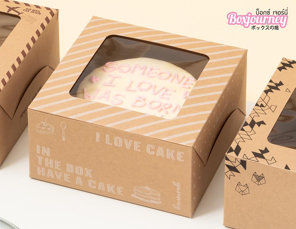 Boxjourney กล่องเค้ก 1 ปอนด์ กระดาษคราฟ ไอเลิฟเค้ก (20 ใบ/แพค)