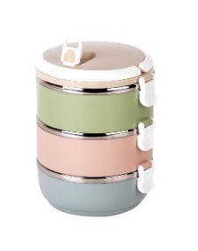 ปิ่นโตสูญญากาศ 3 ชั้น พร้อมหูหิ้ว สี พาสเทล คละสี