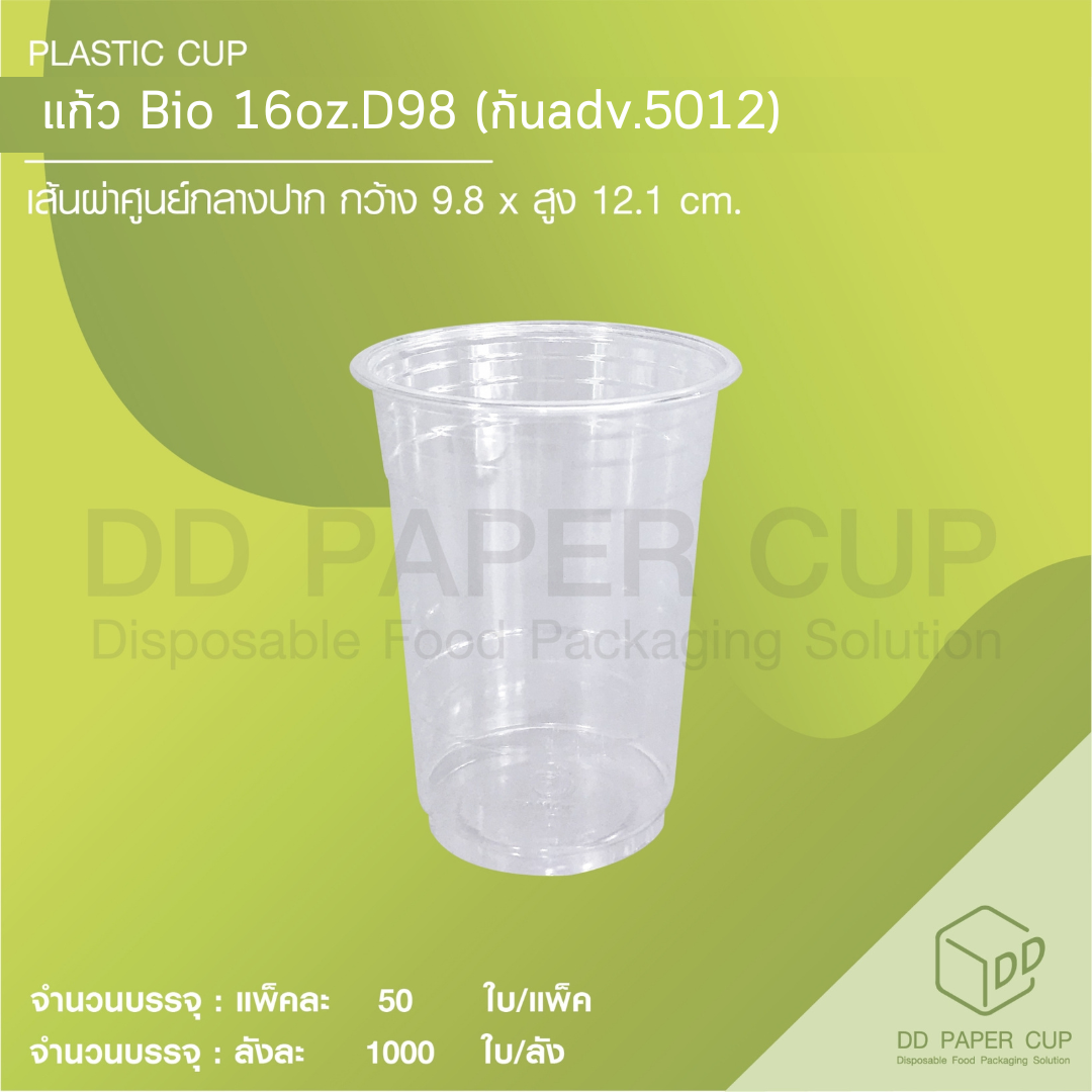 Plastic Cup Bio 16 oz D98 (adv.5012) (Biodegradable plastic ) x 1,000 pcs