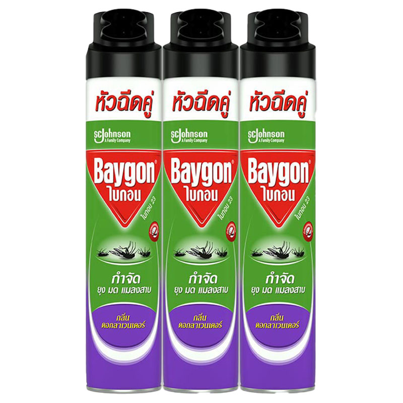 - Name: BAYGON Double Nozzle Mosquito Ant & Cockroach Killer Spray Lavender Scent 600 ml x 3 - Brand: BAYGON - Unit Amount: 3 unit(s)