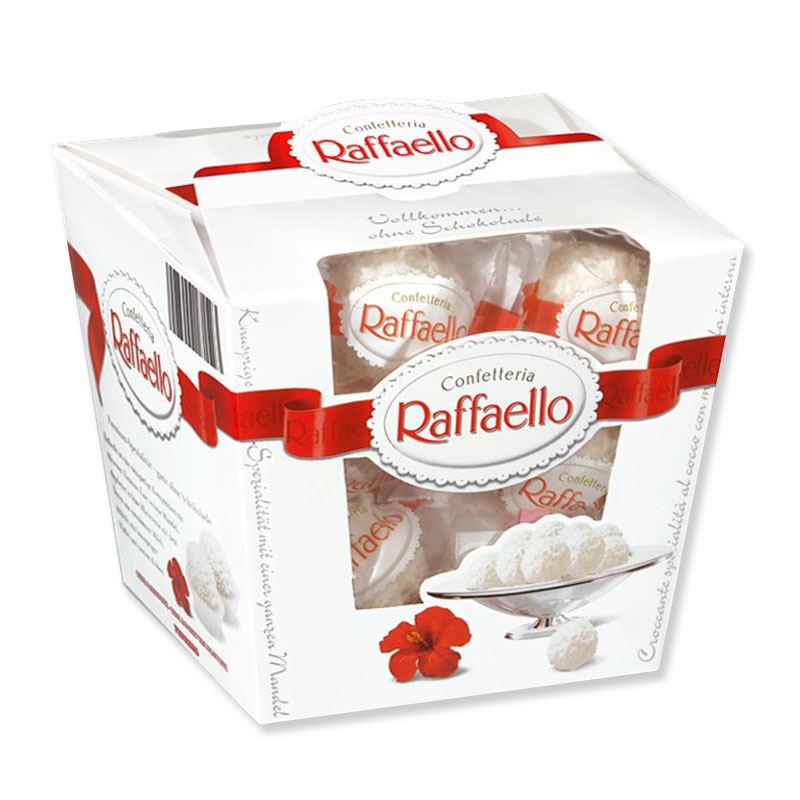 - Name: FERRERO ROCHER Confetteria Raffaello Coconut Chocolate 150 g - Brand: FERRERO ROCHER - Unit Amount: 1 unit(s)