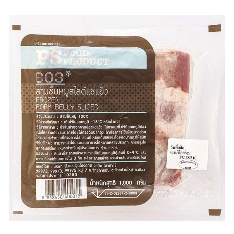 PS FOOD Frozen Sliced Pork Belly 1 kg