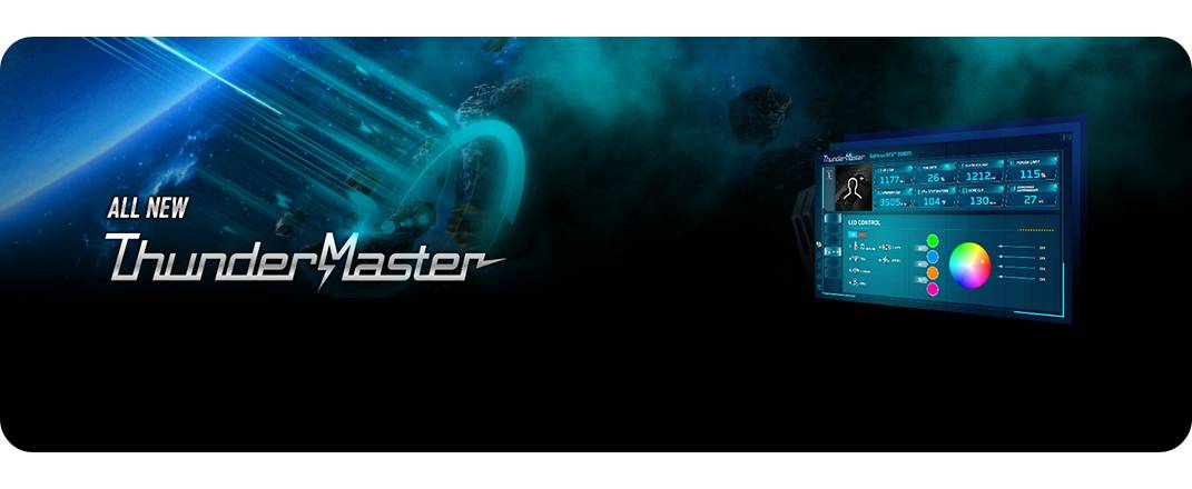 ThunderMaster รุ่นใหม่ของ Palit ได้รับการอัพเกรดจากรุ่นก่อนหน้าอย่างสมบูรณ์ โดยมีอินเทอร์เฟซที่เป็นมิตรกับผู้ใช้มากขึ้น รวมถึงการตั้งค่าส่วนบุคคลที่มากขึ้น ด้วย ThunderMaster คุณสามารถควบคุมการ์ดแสดงผลของคุณตั้งแต่การตั้งค่าโอเวอร์คล็อก ความเร็วพัดลม ไปจนถึงเอฟเฟกต์ LED นอกจากนี้คุณยังสามารถตรวจสอบสถานะ GPU ได้ด้วยยูทิลิตี้ ThunderMaster