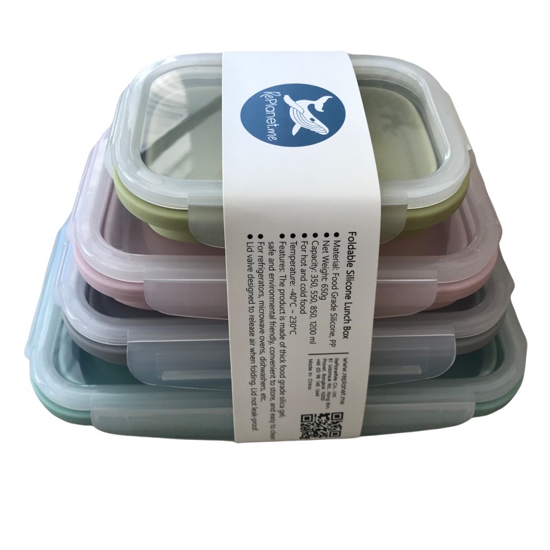 - กล่องใส่อาหารพับเก็บได้พกพาสีพาสเทลสดใส 4 ขนาดในหนึ่งชุด: S (350 ml), M (550 ml), L (850 ml), XL (1200 ml)
