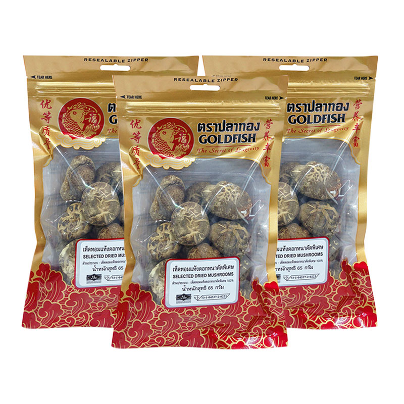 - Name: GOLDFISH Selected Dried Shiitake Mushrooms 65 g x 3 - Brand: GOLDFISH - Unit Amount: 3 unit(s)