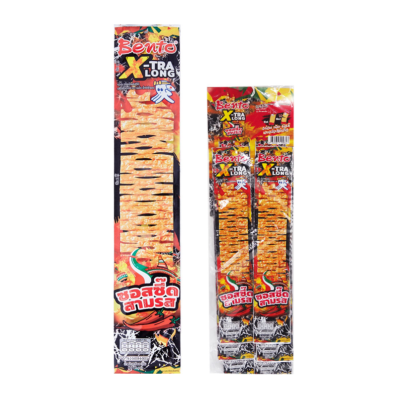 - Name: BENTO Extra Long Squid Seafood Snack Samros 10 g 6 pcs - Brand: BENTO - Unit Amount: 6 unit(s)