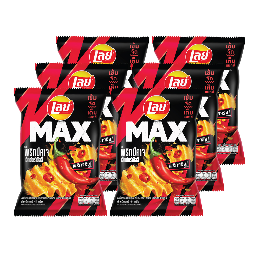 Feel the intense heat with Lay’s Max Crispy Ridges Potato Chips, Devil's Chili Extra Spicy Flavor. This delicious snack from Lay’s, the brand known for its high-quality crispy potato chips, is both crunchy and rich in flavor, making it a long-time favorite among Thai snack lovers.