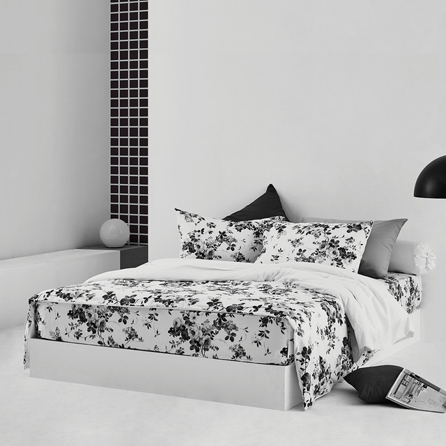 LOTUS ผ้าปูที่นอน รุ่น Black & White-LI-BW 03W ขนาด 5 ฟุต 5 ชิ้น