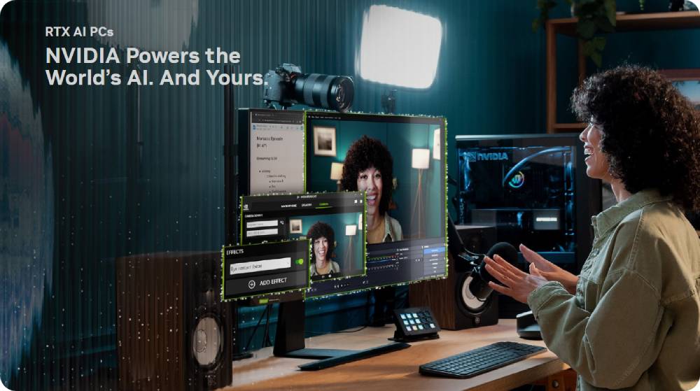 อัปเกรดสู่ AI ขั้นสูงด้วยกราฟิกการ์ด NVIDIA GeForce RTX™ เพื่อเร่งประสิทธิภาพในด้านการเล่นเกม งานสร้างสรรค์ การทำงาน และการพัฒนา ด้วยชิปประมวลผล AI ที่ฝังมาในตัว คุณจะได้สัมผัสกับเทคโนโลยี AI ชั้นนำของโลกที่ขับเคลื่อนอยู่บนพีซี Windows ของคุณ