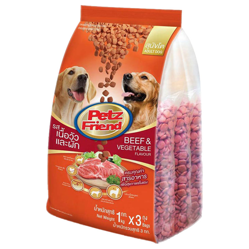 - Name: PETZ FRIEND Adult Dog Food Beef & Vegetable 1 kg 3 bags - Brand: PETZ FRIEND - Unit Amount: 1 pack(s)
