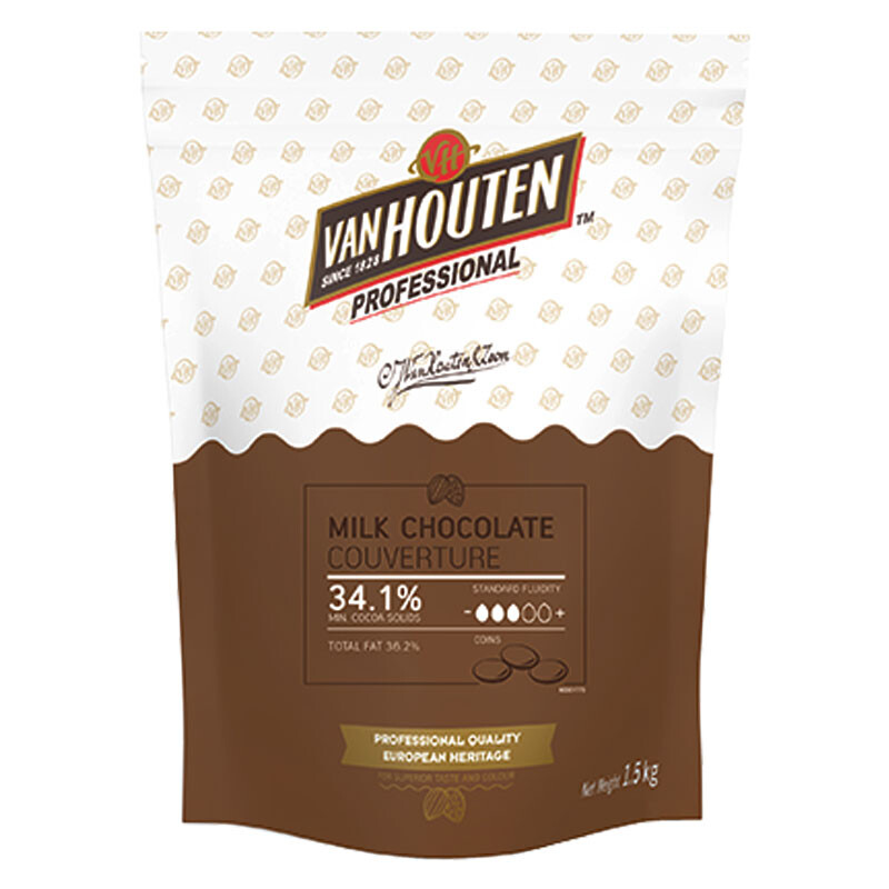 - Name: VAN HOUTEN Milk Chocolate Couverture 34.1% 1.5 kg - Brand: VAN HOUTEN - Unit Amount: 1 unit(s)