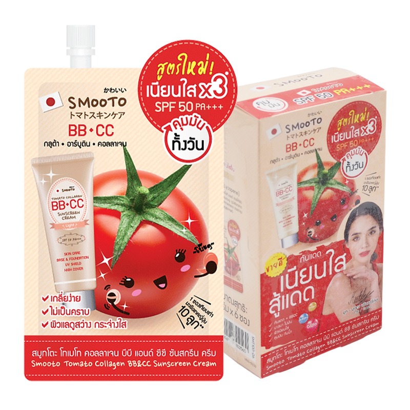 - Name: SMOOTO Tomato Collagen BB & CC Sunscreen Cream 8 g 6 pcs - Brand: SMOOTO - Unit Amount: 6 unit(s)