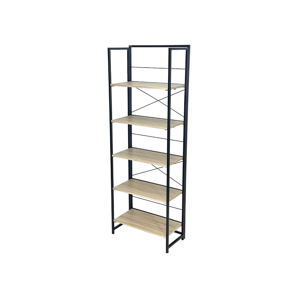 ชั้นวางของ 5ชั้น พับได้ รุ่นSR5 ขาสีขาว แผ่นไม้สีโอ๊ค ขนาด 64 cm. x 33 cm. x 182 cm.