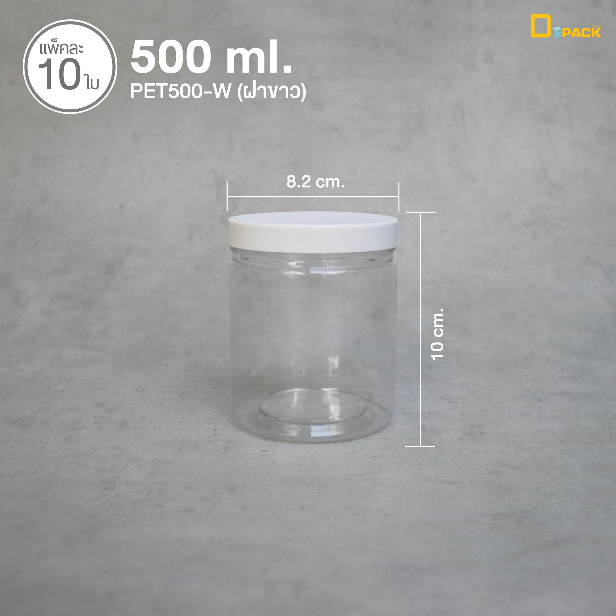 Depack PET500-W (ฝาขาว) กระปุกพลาสติกใส ฝาเกลียว ขนาด 500 ml. (1 แพ็ค/ 10 ชิ้น)