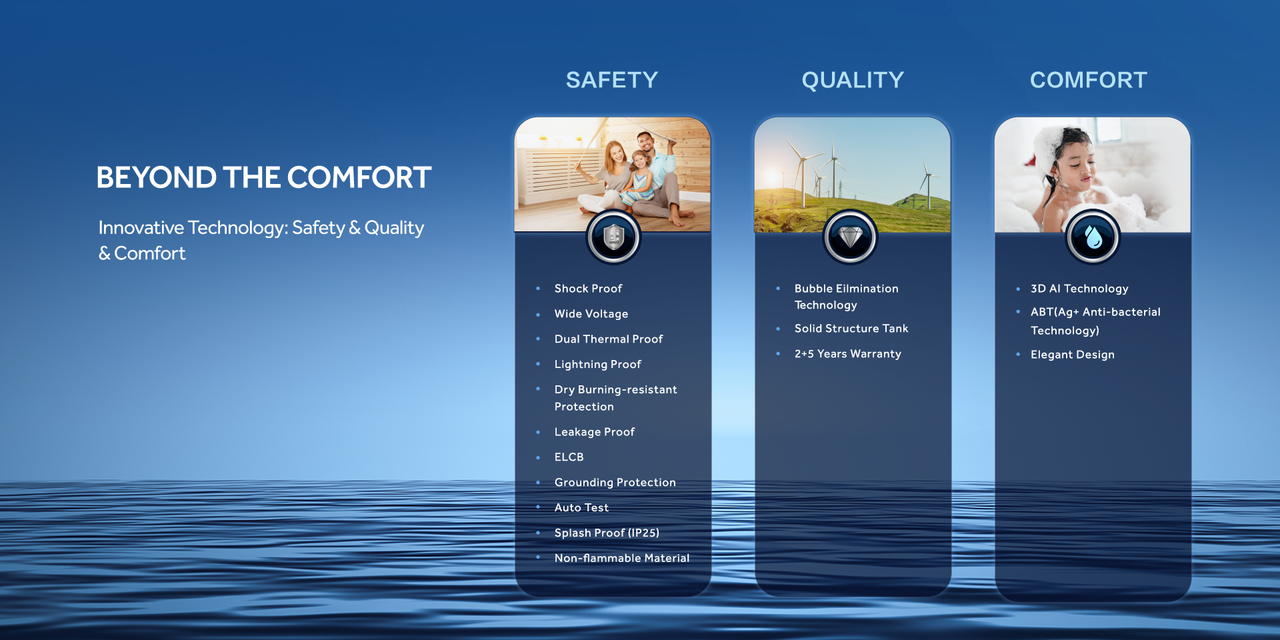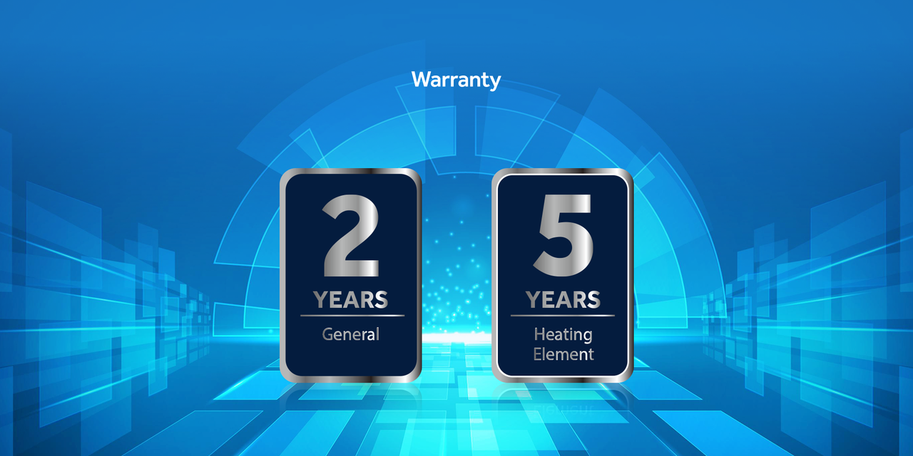 - ระบบการทำความร้อน Solid Structure Tank รองรับการกระตุ้นด้วยแรงดันน้ำได้ถึง 100,000 รอบ, การรับประกัน 2+5 ปี