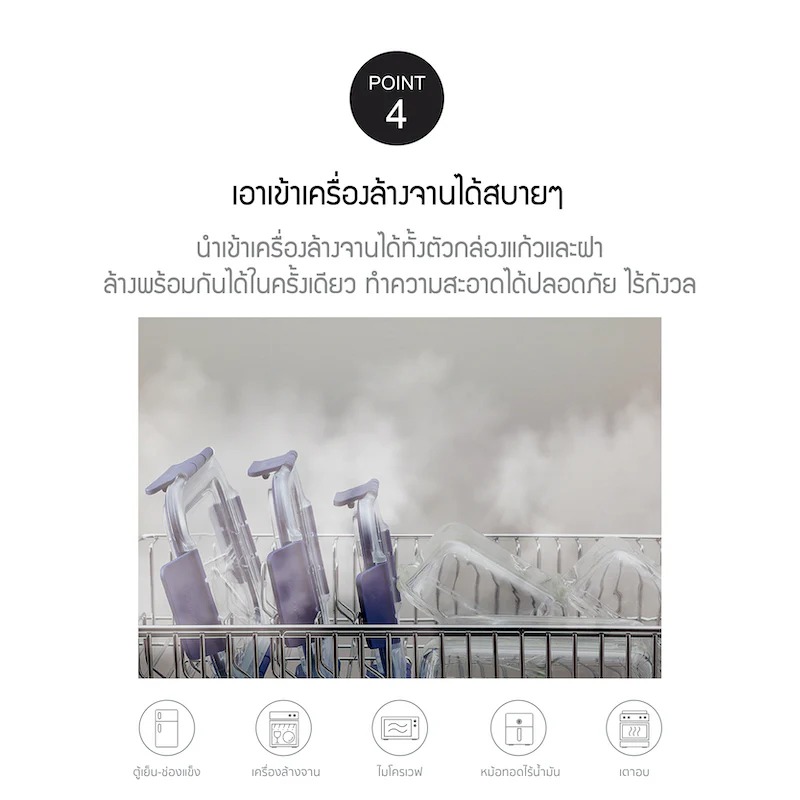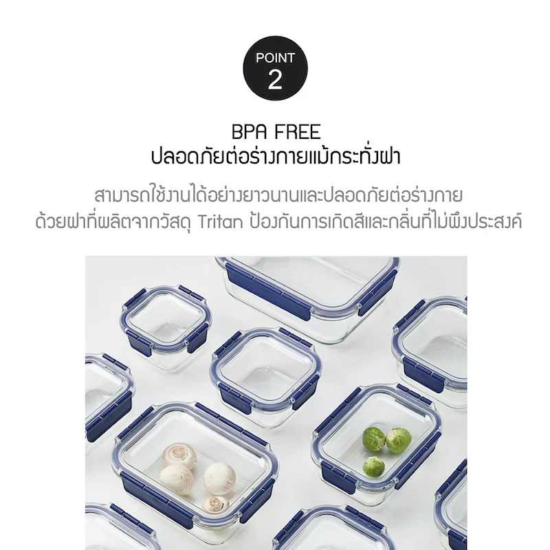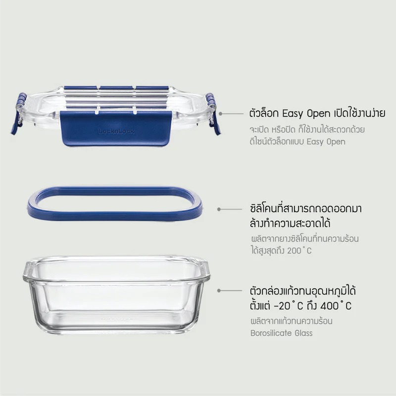 | Material | Container: High heat-resistant borosilicate glass Lid: PCT Locking clips: PP, silicone BPA Free, safe for use |
