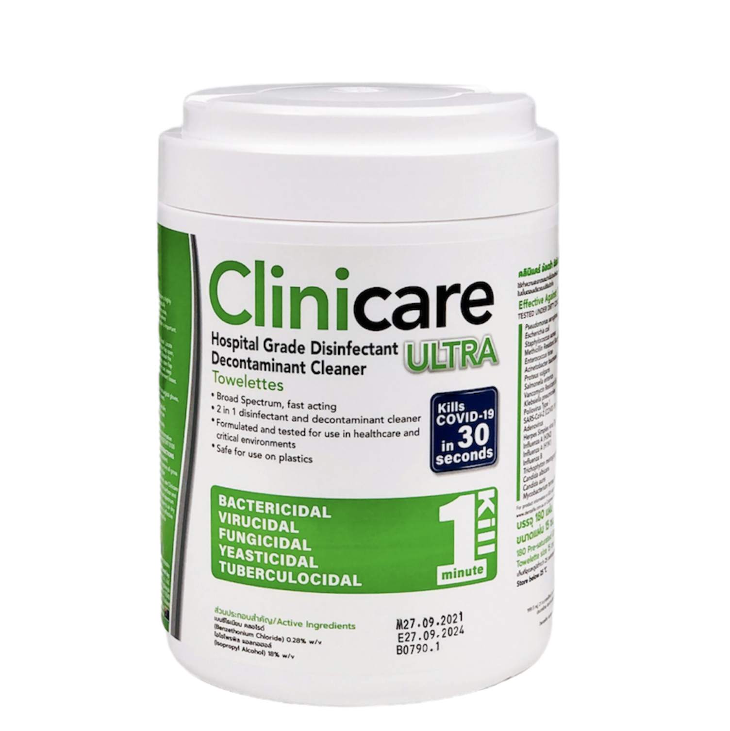 Clinicare Ultra ทิชชู่เปียกฆ่าเชื้อ เกรดโรงพยาบาล HGD Wipes กระป๋องเขียว บรรจุ 180 แผ่น x 1 กระป๋อง