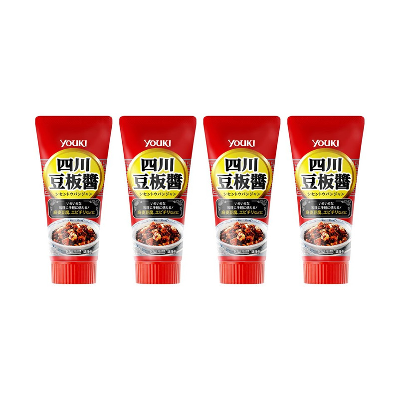 YOUKI Shisen Tobanjan - Sichuan Chili Miso Doubanjiang Sauce - Chili and Broad Bean - Portable Travel Size - Professional and Home Cooking - Made in Japan - Set of 4 Pieces - 4 x 100 G
