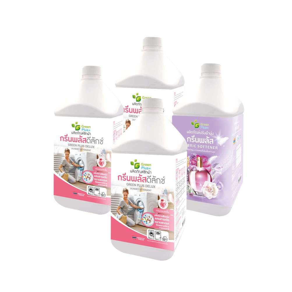 กรีนพลัส น้ำยาซักผ้า 3.8 ลิตร x 3 แกลลอน [แถมน้ำยาปรับผ้านุ่มไวโอเลตซอฟท์ 3.8 ลิตร 1 แกลลอน]