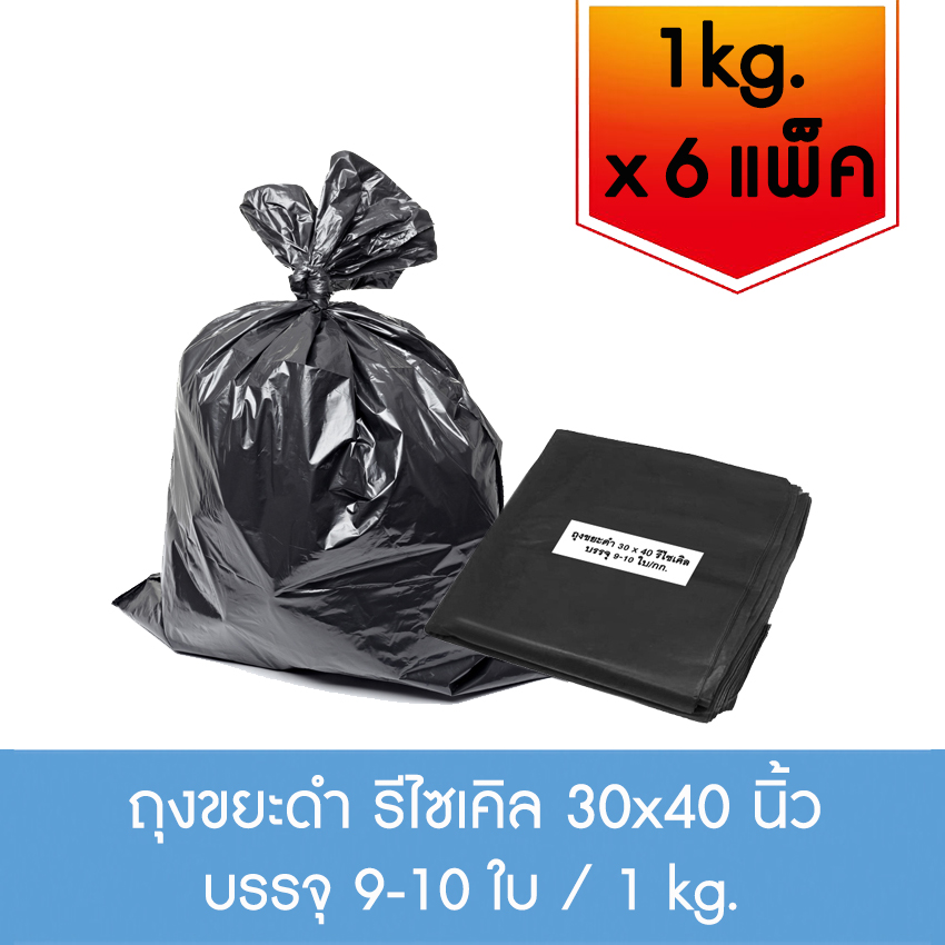 ถุงขยะดำ รีไซเคิล 30 x 40 นิ้ว 1 กก. x 6 แพ็ค