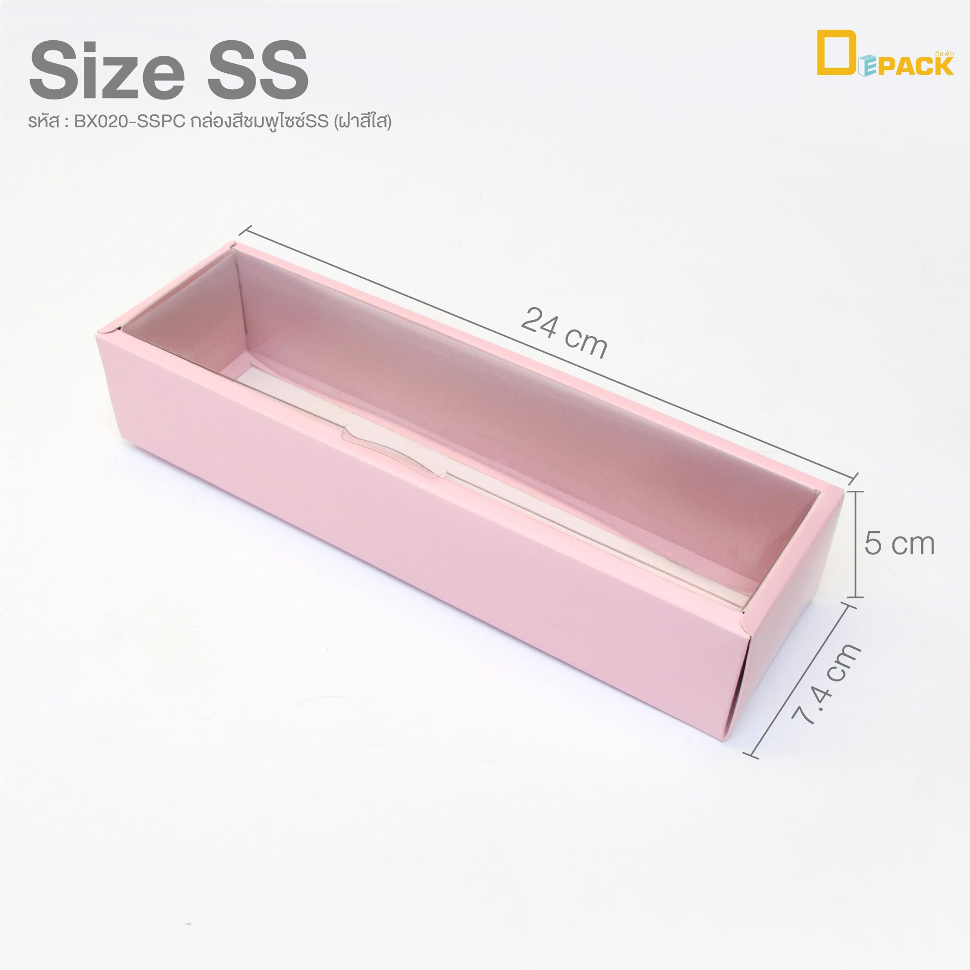 BX020-SSPC กล่องสีชมพูพร้อมฝาใส (ไซซ์ SS) สำหรับบรรจุขนม / ของขวัญ / อาหารว่าง / บราวนี่ / เครื่องสำอางและสินค้าต่างๆ ขนาดภายในกล่อง : 6 x 24 x สูง 5 ซม. 1 แพ็ค มี 20 ใบ ราคาไม่รวมเชือก ป้ายห้อย และของตกแต่ง ***สแกน QR code บนฉลากสินค้าเพื่อดูวิธีการพับหลังจากสั่งซื้อ***