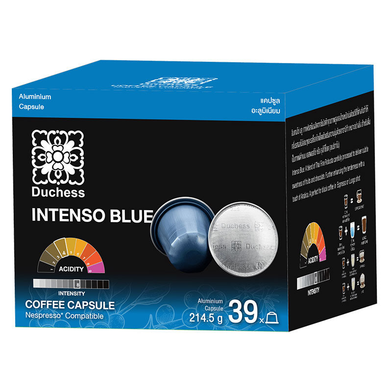 - Name: DUCHESS Intenso Blue Coffee Capsule 5.5 g 39 pcs - Brand: DUCHESS - Unit Amount: 39 unit(s) How to Preserve: Store in a cool, dry place away from direct sunlight.