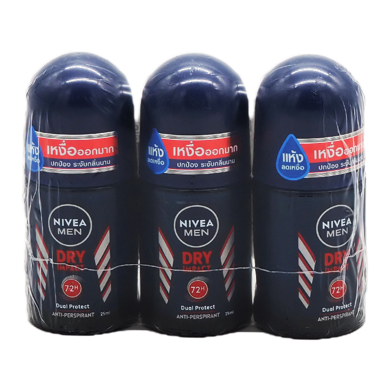 - Name: NIVEA Men Dry Impact Roll On 25 ml x 3 - Brand: NIVEA - Unit Amount: 3 unit(s)