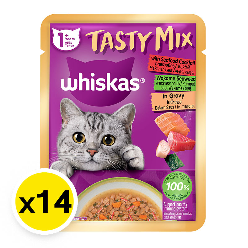 - Name: WHISKAS Tastmix Wet Cat Food Seafood Cocktail 70 g x 14 - Brand: WHISKAS - Unit Amount: 14 unit(s)