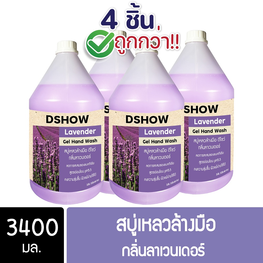 DShow สบู่เหลวล้างมือ น้ำยาล้างมือ สีม่วง กลิ่นลาเวนเดอร์ Liquid Hand Soap ขนาด 3400 มล. แพ็ค 4 ชิ้น