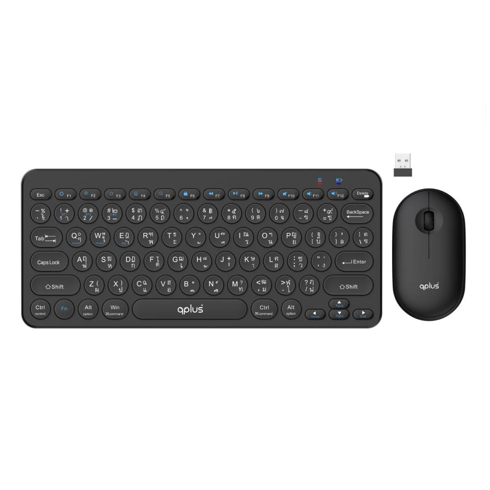 QPLUS Wireless Mouse Keyboard 1928 Stylish Black TH/EN