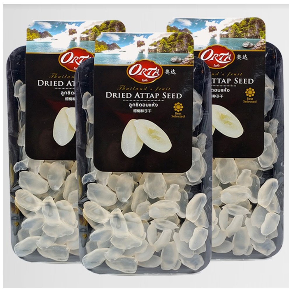 ลูกชิดอบแห้ง หวานจากธรรมชาติ อร่อย เนื้อหนึบ เคี้ยวเพลิน น้ำหนัก : 150g อายุการเก็บรักษา : 12 เดือน (1ปี) เลขที่จดแจ้ง (อย.) : 83-2-02246-2-0083 ส่วนประกอบสำคัญ : ลูกชิด (Attap seed) 80% น้ำตาล (Sugar) 18% อื่นๆ (etc) 2%