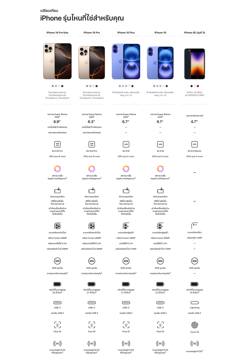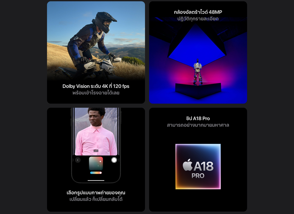 • Back Camera : Pro camera system (48MP Fusion, 48MP Ultra Wide, and 12MP Telephoto)