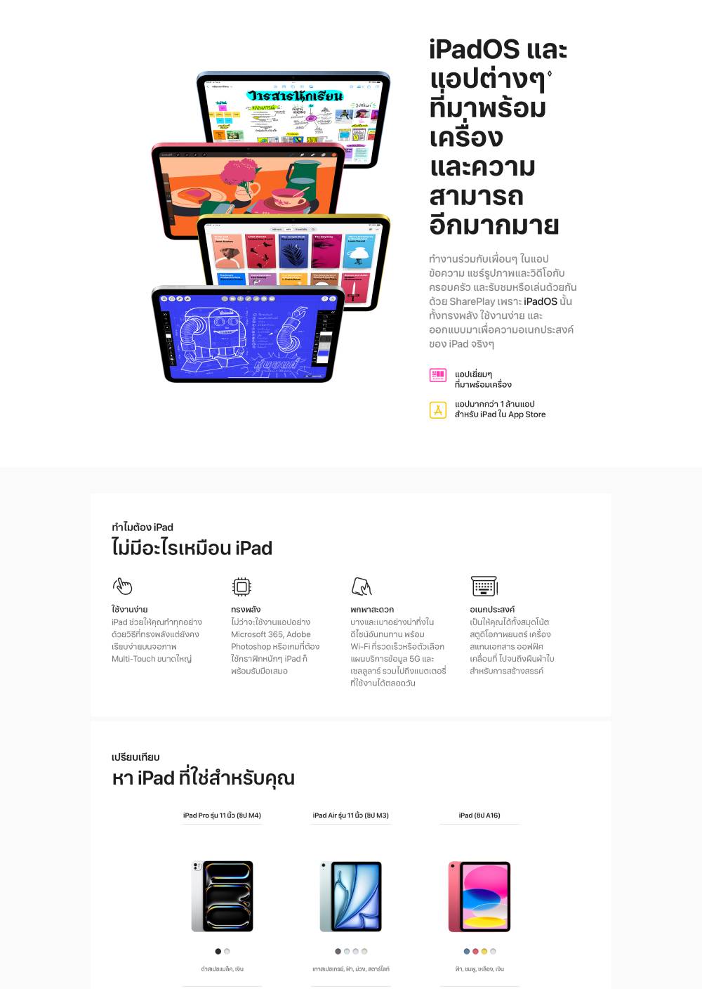 • IPADOS + แอป—iPadOS ทำให้ iPad ทั้งมีประสิทธิภาพ ใช้งานง่าย และอเนกประสงค์มากขึ้น โดย iPadOS ช่วยให้คุณใช้งานหลายแอปได้พร้อมกัน ใช้ Apple Pencil เขียนลงในช่องข้อความใดก็ได้ด้วยคุณสมบัติการเขียนข้อความ และยังสามารถแก้ไขและแชร์รูปภาพได้ ยิ่งไปกว่านั้น iPad ยังมาพร้อมแอปที่จำเป็นอย่าง Safari, ข้อความ และ Keynote แถมยังมีอีกเกินล้านแอปที่ออกแบบมาโดยเฉพาะสำหรับ iPad ใน App Store อีกด้วย