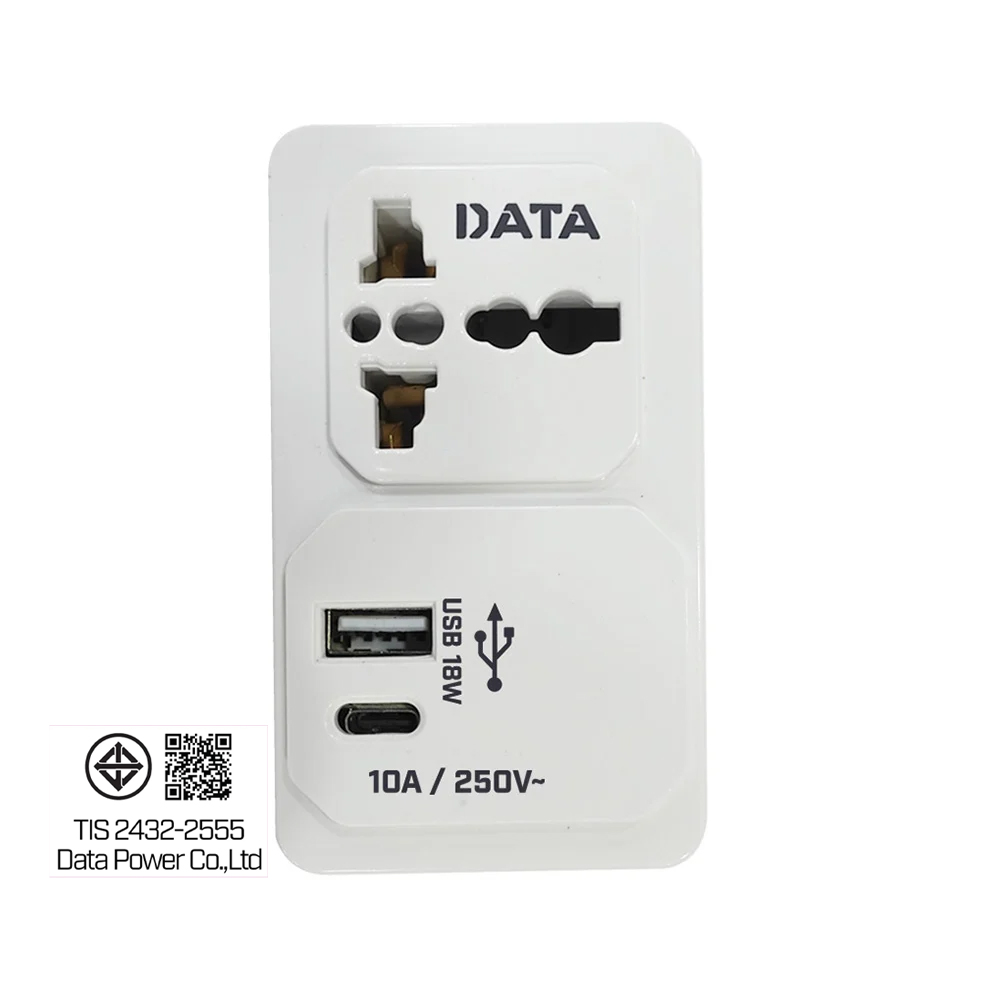ปลั๊กไฟ Universal Adpater 1 ช่อง 1 USB-A 1 USB-C ผลิตจากพลาสติกคุณภาพดี ทนทานต่อความร้อน ไม่ลามไฟ เต้ารับผลิตจากทองเหลืองแท้ ขนาดเล็กง่ายต่อการพกพา ให้คุณมั่นใจในคุณภาพและความปลอดภัย