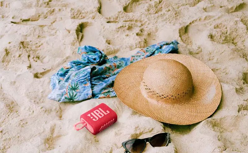 กันน้ำและกันฝุ่น IP67ไปที่สระว่ายน้ำ สวนสาธารณะ. JBL Go 3 กันน้ำและกันฝุ่นตามมาตรฐาน IP67 คุณจึงสามารถพกพาลำโพงไปได้ทุกที่