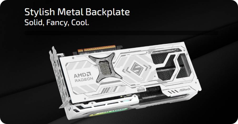 ออกแบบมาเพื่อหลีกเลี่ยงการโค้งงอของ PCB รูปลักษณ์ที่เก๋ไก๋ทำให้การ์ดกราฟิกดูเป็นตำนานยิ่งขึ้น นอกจากนี้ยังช่วยเพิ่มประสิทธิภาพการระบายความร้อนด้วยแผ่นระบายความร้อนคุณภาพสูงที่ติดตั้งไว้ด้านหลัง