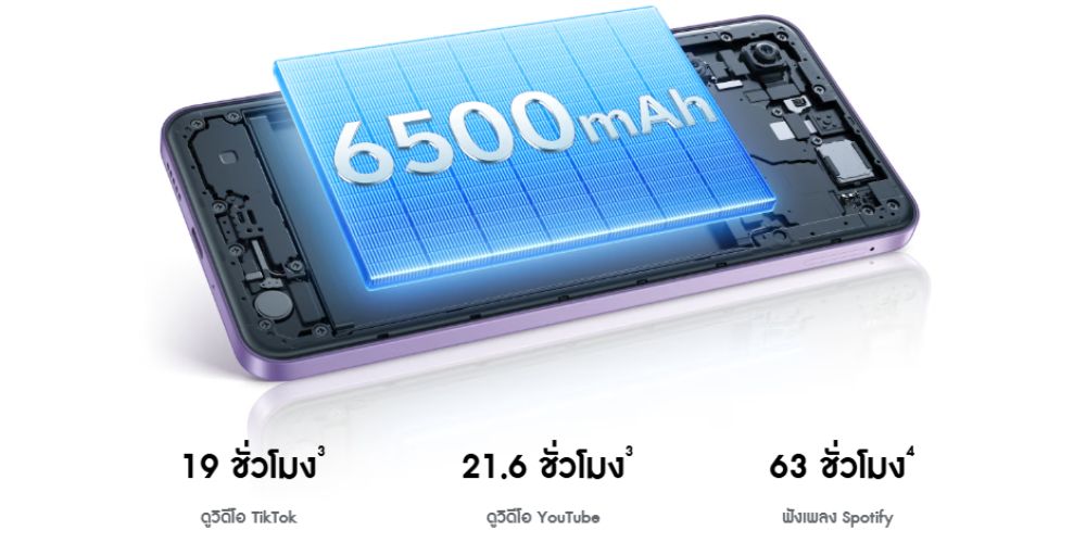 แบตเตอรี่ BlueVolt 6500mAh ให้อายุการใช้งานยาวนานในเครื่องที่บางเฉียบ ใช้งานได้เต็มพลังทุกวัน พร้อมความทนทานสูงสุดนาน 5 ปี