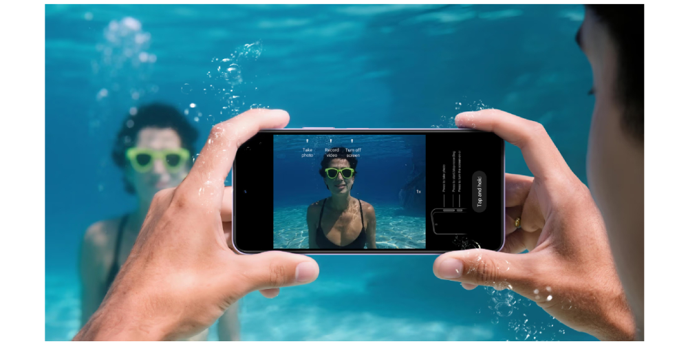 ใช้งานใต้น้ำลึก 1.5 ม. นาน 30 นาที สัมผัสลื่นแม้มือเปียก และไล่น้ำออกง่ายเพียงแตะครั้งเดียว