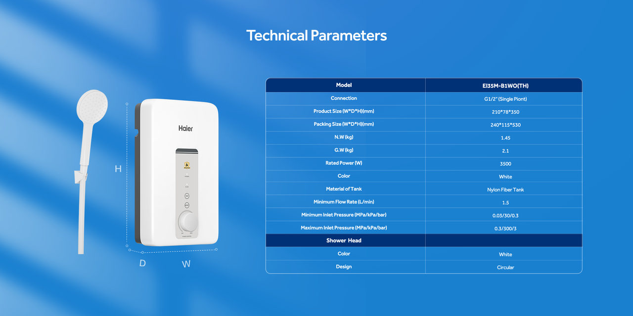 Haier เครื่องทำน้ำอุ่น กำลังไฟ 3500 วัตต์ รุ่น EI35M-B1WO(TH)