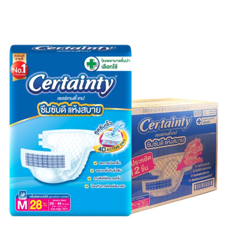 เซอร์เทนตี้ เทป ผ้าอ้อมผู้ใหญ่ แบบเทป ขนาด M 28 ชิ้น 4 แพ็ค