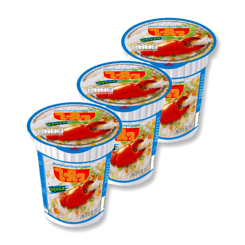 ไวไว เส้นหมี่กึ่งสำเร็จรูปปรุงรสชนิดถ้วย 60 ก. x 3