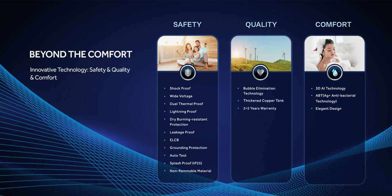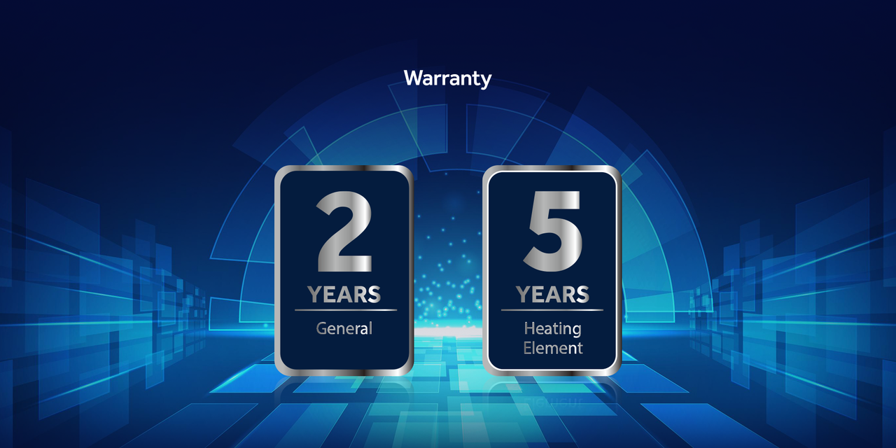 - ระบบการทำความร้อน Thickened Copper Tank รองรับการกระตุ้นด้วยแรงดันน้ำได้ถึง 100,000 รอบ, การรับประกัน 2+5 ปี
