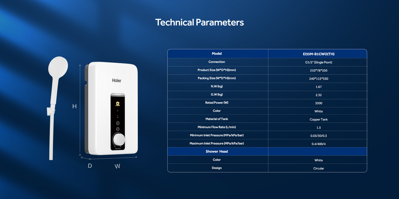 Haier เครื่องทำน้ำอุ่น กำลังไฟ 3500 วัตต์ รุ่น EI35M-B1CWO(TH)