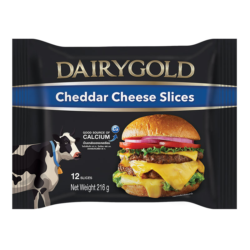 | ชื่อสินค้า | แดรี่โกลด์ เชดด้าชีสแผ่น 216 ก. 12 สไลซ์ |