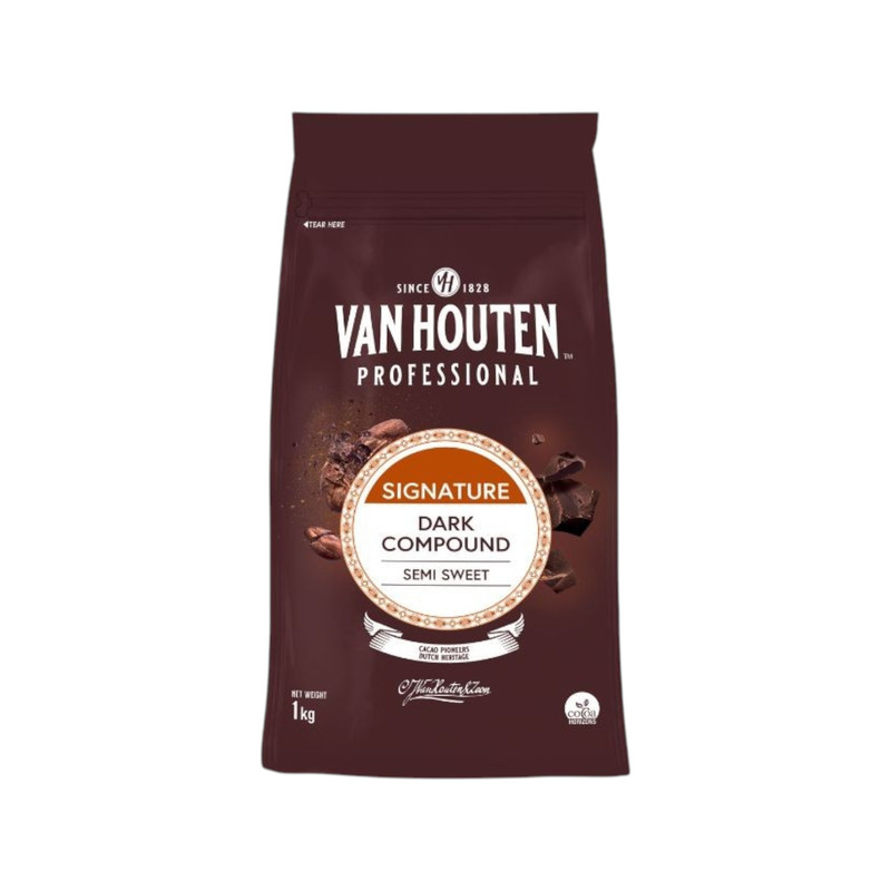 Van Houten SemiSweetDark CompoundCoins แวนเฮาเตนเซมิสวีทดาร์คคอมพาวคอย 1กก. 'ดาร์คคอมพาวด์ช็อกโกแลต แบบเหรียญ ช็อกโกแลตเข้มข้นรองลงมาจากอินเท้นดาร์คคอมพาวด์/ ควรเก็บรักษาที่อุณหภูมิ 12-20 องศา/ ตัวอย่างเมนู: เคลือบหน้าเค้ก, มูสเค้ก, ทาร์ตช็อกโกแลต, เค้ก, ดาร์คคุกกี้ >ใช้เมล็ดโกโก้จากแอฟริกาและละตินอเมริกา >ให้ความกลมกล่อมของช็อคโกแลต มีความเข้นข้นของช็อคโกแลตรองลงมาจาก Intense Dark >ไม่รู้สึกถึงไขมันเคลือบปากเวลารับประทาน ซึ่งเป็นเทคนิคการผลิตของ Van Houten Professional